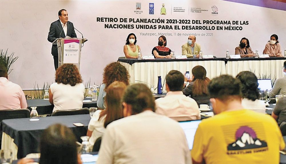 Cuernavaca.- El gobernador Cuauhtémoc Blanco acudió al cierre del ‘Retiro de Planeación Estratégica 2021-2022’, organizado por el Programa de las Naciones Unidas para el Desarrollo (PNUD); donde se establecieron las bases para mantener estrategias que benefician a productores del campo morelense.
