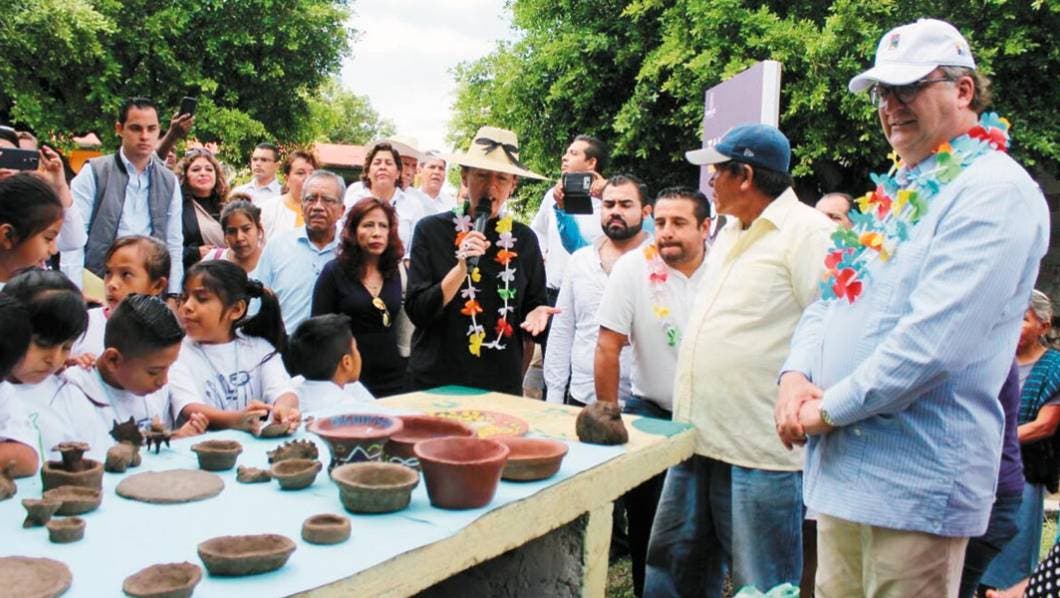 Artesanos. En la Secundaria "Cuauhtémoc", Graco Ramírez conoció el trabajo que 500 niños y niñas realizaron, entre ellos la alfarería.