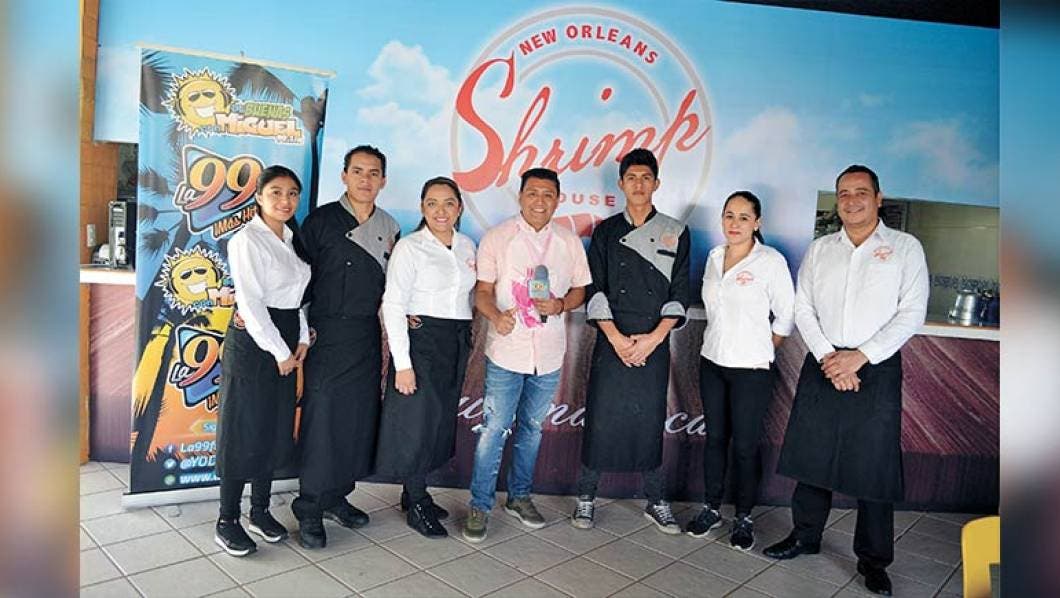 Con motivo de la apertura de New Orleans Shrimp House, Miguel Barrientos, locutor de La 99 ¡Más Hits! y los integrantes del Team 99, estuvieron presentes en dicho lugar.