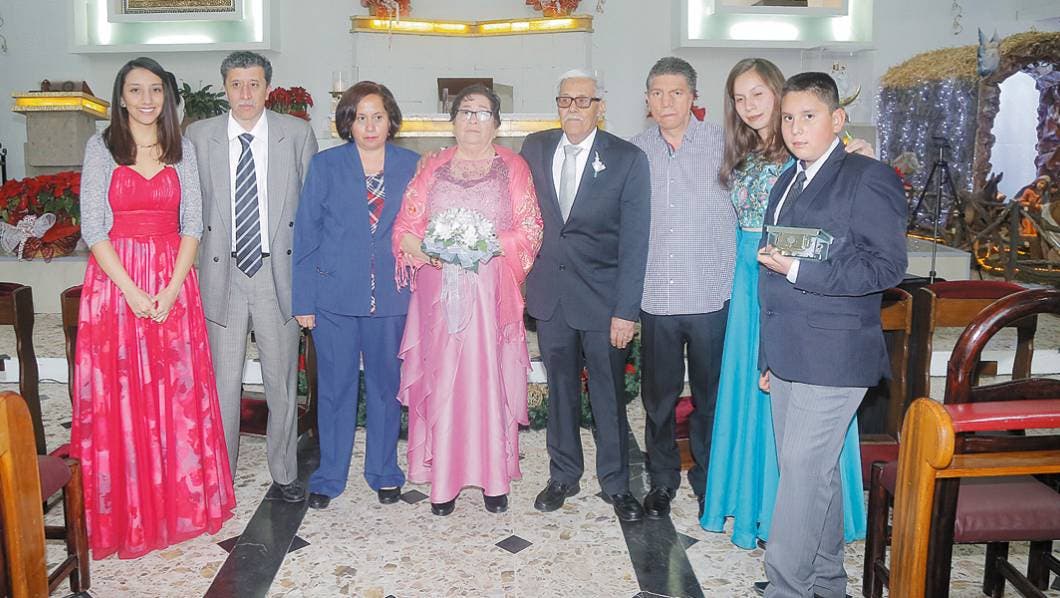 Definida como una pareja paciente, amorosa y con grandes valores, Guadalupe Medina y Modesto Rangel festejaron sus Bodas de Esmeralda con una gran celebración, encabezada por una misa de acción de gracias. Al evento acudieron amigos y familiares de la pareja, algunos de ellos fungieron como padrinos de lazo y de arras. “Mis abuelitos han sabido ser muy pacientes, creo que el tiempo solo ha hecho que su amor crezca todos los días” mencionó Dalia Rangel, madrina de lazo y nieta de la pareja.