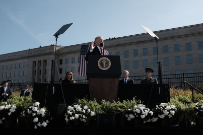 Poco después en El Pentágono, en la vecina Arlington, Virginia, el mandatario colocó una ofrenda floral en un parque erigido en memoria de las 125 personas que perdieron la vida cuando al tercero de los aviones se impactó contra la fachada oeste de la masiva construcción, a las 09:37 horas locales.