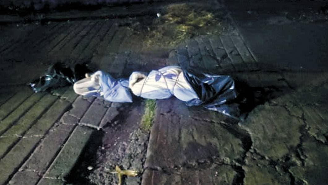 Al parecer, el hombre fue torturado y privado de la vida en otro lugar, y sus victimarios lo dejaron envuelto en una colcha blanca con azul, y en bolsas negras colocadas en pies y cabeza.