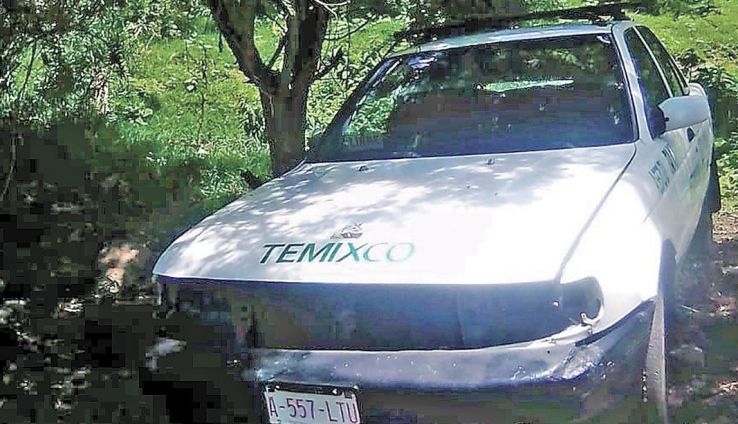 Con algunas piezas faltantes y el medallón destrozado, fue hallado un taxi de Temixco, Nissan-Tsuru, placas A-557 LUT, el cual se encontraba abandonado en un camino de terracería que conduce a la barranca de la colonia Miguel Hidalgo, en Xochitepec, por lo que fue asegurado por policías y puesto a disposición de las autoridades ministeriales.