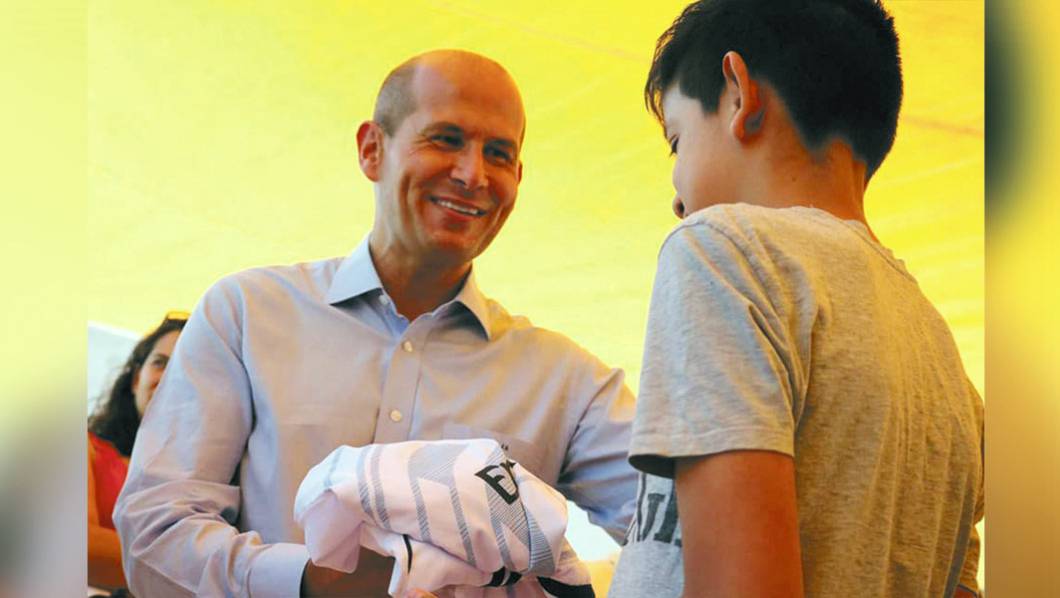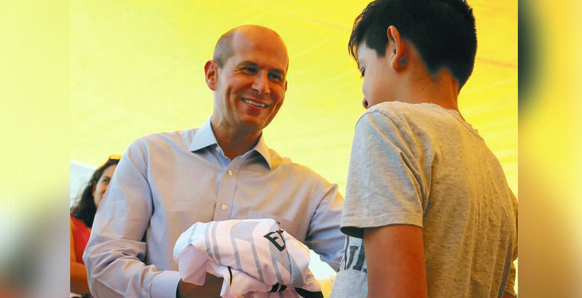 De visita. El legislador Jaime Álvarez aprovechó el fin de semana para promover la actividad física, mediante entrega de uniformes.