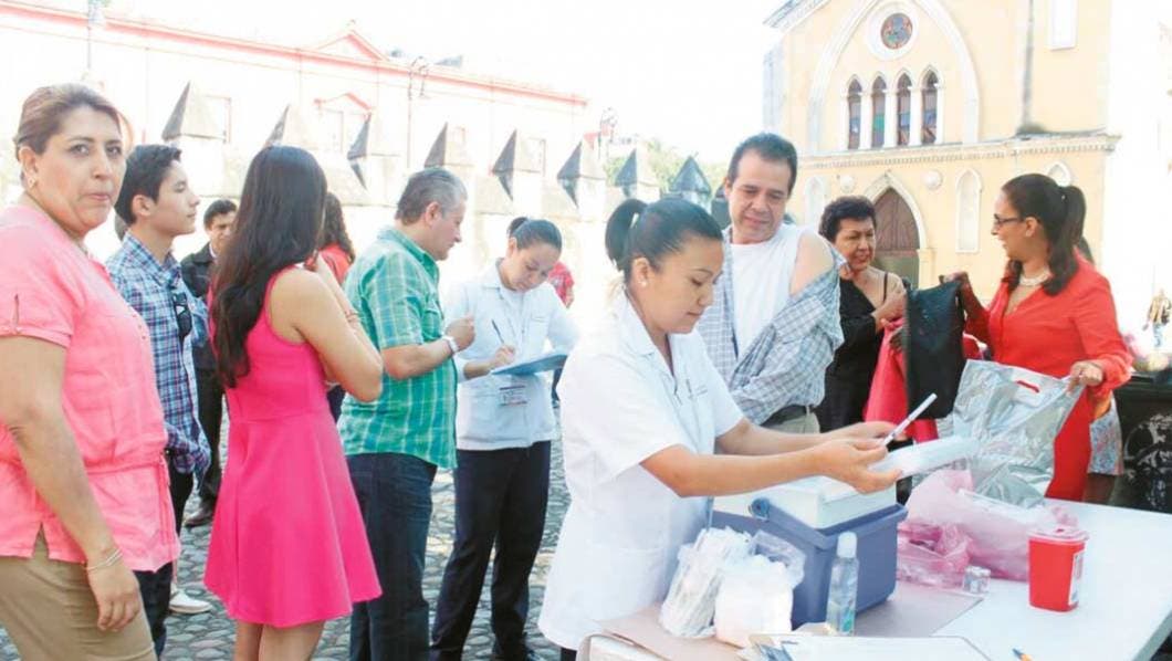 Aplicación. Afuera de la Catedral ayer la Secretaría de Salud inmunizó a los habitantes contra la influenza.