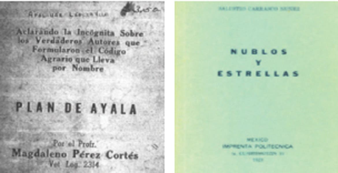 Testimonio divulgado en 1964 sobre la autoría del Plan de Ayala dirigido al Archivo Histórico de la Secretaría de la Defensa Nacional. Libro de poemas de Salustio Carrasco publicado en 1923.