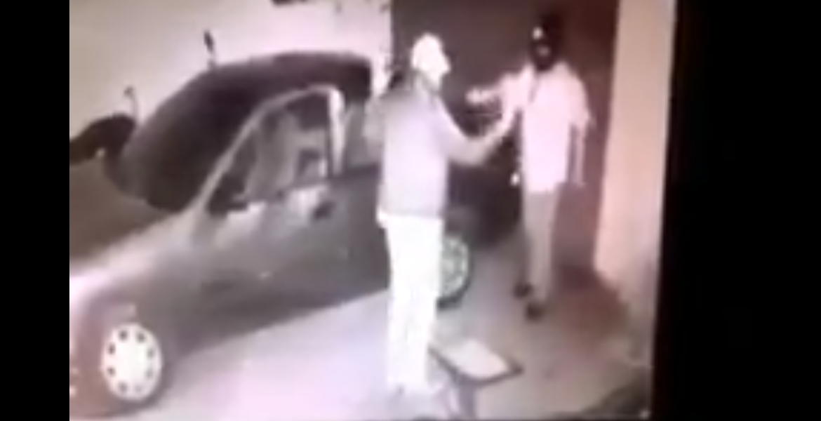 Ya en el suelo y herido, el malhechor intenta disparar nuevamente cotra la víctima, quien dispara una vez y ante el impacto, el supuesto asaltante suelta el arma, la cual es recogida por la víctima, el video termina con el agresor aun en el piso, pero medios locales infroman que logró huir de la escena.