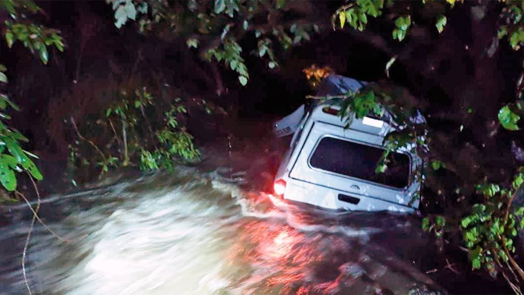 Tepoztlán.- Un hombre terminó con algunos golpes y completamente empapado, luego de que su camioneta fuera arrastrada algunos metros por la corriente de agua en la colonia Las Mariposas de Tepoztlán. El hombre comentó que al pasar por el vado de la calle Camino Real la corriente de agua arrastró su camioneta.