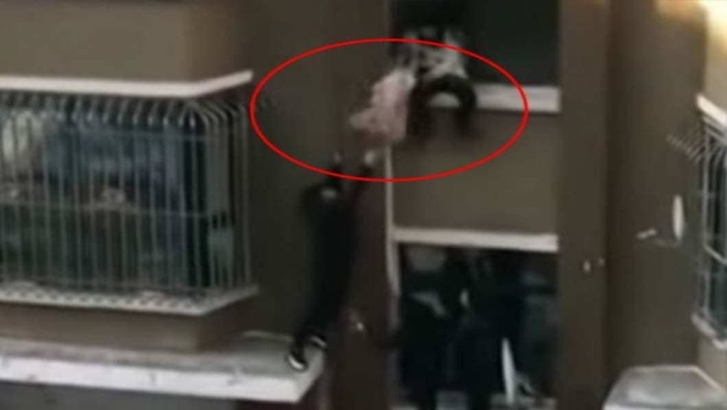 Cuando la madre pretendía entregar el niño a Li, la cobija con la que se encontraba envuelto se abrió y dejó caer al bebé al vacío. Afortunadamente, el hombre logró atraparlo y ponerlo a salvo, mientras mantenía el equilibrio.