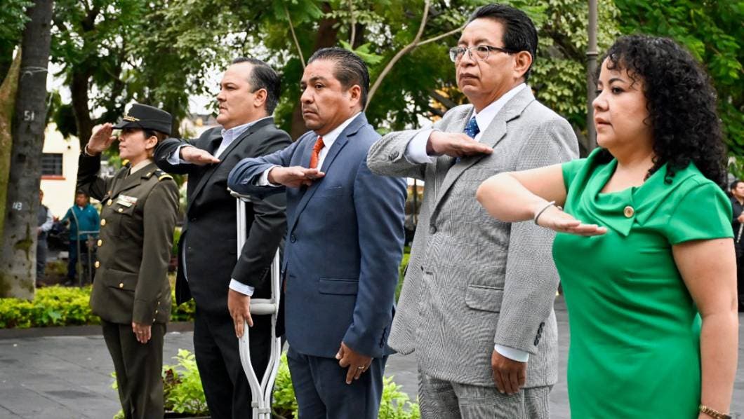 El secretario de Desarrollo Social estuvo acompañado en este acto cívico por el diputado Alberto Sánchez Ortega, representante del Congreso del Estado; el magistrado Manuel Díaz Carbajal, del Tribunal Superior de Justicia del Estado de Morelos; la mayor enfermera Dulce Ericka Rosas Sánchez, en representación de la 24/a Zona Militar; y la regidora por Cuernavaca, Mirna Delgado Romero.