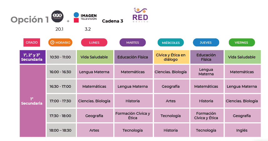 Primero de secundaria: 16:00 a 19:00 horas, canal 3.2