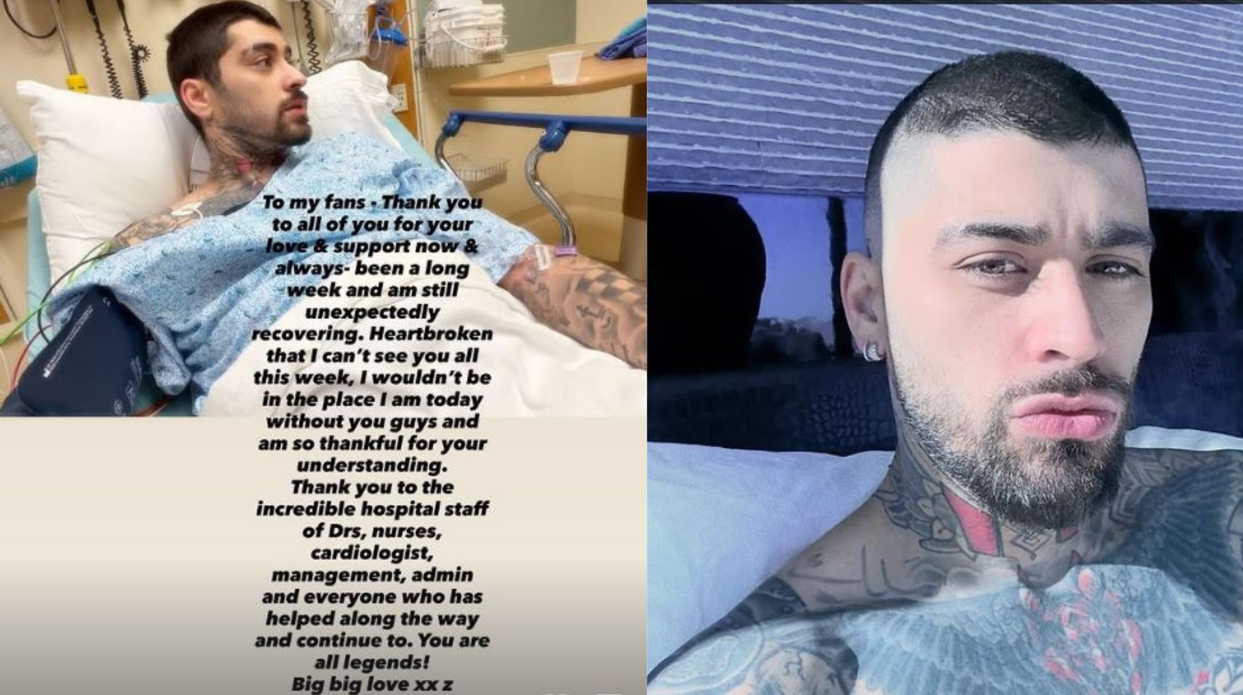 Desde su cuenta verificada de Instagram (@zayn), el cantante publicó una imagen en la que aparece recostado en una cama hospitalaria, vistiendo bata de paciente, con una cánula intravenosa en el brazo y cables visibles en el pecho (aparentemente conectados a un monitor cardíaco). Su mensaje, escrito en inglés y dirigido directamente a su base de seguidores, dice textualmente: “To all my fans — thank you to all of you for your love and support now and always. Been a long week and am still unexpectedly recovering. Heartbroken that I can’t see you all this week, I wouldn’t be in the place I am today without you guys and am so thankful for your understanding.Thank you to the incredible hospital staff of Drs, nurses, cardiologist, management, admin and everyone who has helped along the way and continue to. You are all legends! Big big love xx z”.
