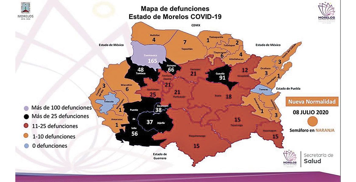Hasta ayer, en Morelos sel registro era de 3, 337 casos confirmados, 632 casos sospechosos y 732 defunciones.