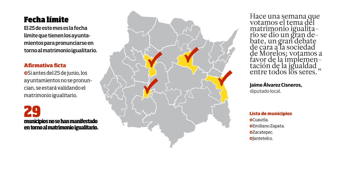 CUERNAVACA, MORELOS.- El cabildo de Jiutepec estaría en condiciones de aprobar este día la reforma avalada por el Congreso del estado, referente al matrimonio igualitario.