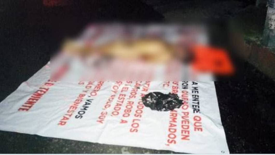 Junto al cuerpo había dos bolsas con prendas de vestir que posiblemente pertenecían al occiso y una cartulina color naranja con el texto “Soy parte de la limpia de Morelos y esto le va a pasar a todos los que ayuden a Abel Maya y a los linos y a Cristina”.