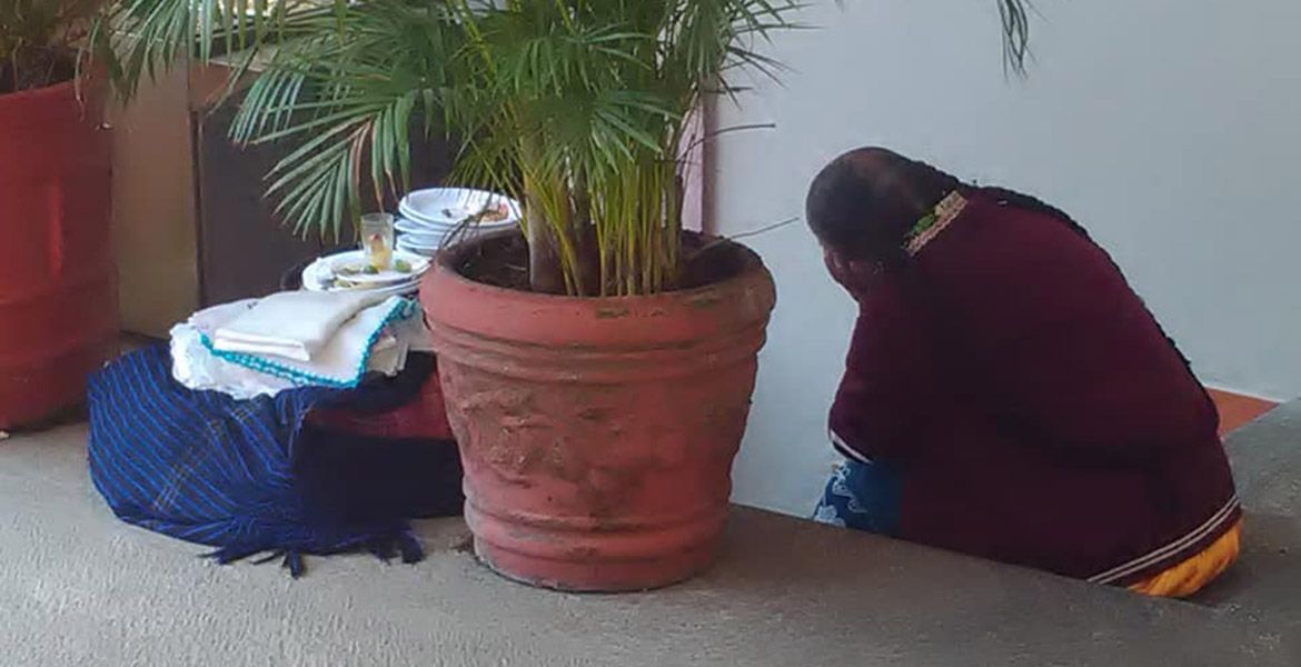 Circulan en redes sociales las imágenes de una mujer indígena que lamenta no poder vender sus servilletas bordadas a mano.