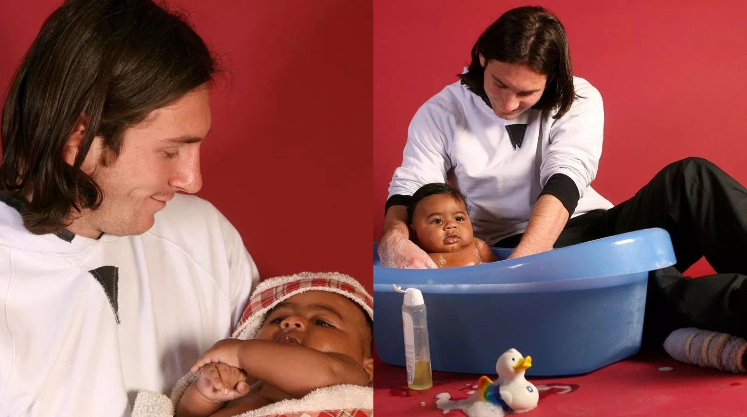 “Messi es un tipo muy introvertido, es penoso y venía saliendo del vestidor y de repente se encuentra en otro vestuario con una tina de plástico llena de agua y un bebé dentro, fue complicado al principio ni siquiera sabía cómo sujetarlo”, recordó.
