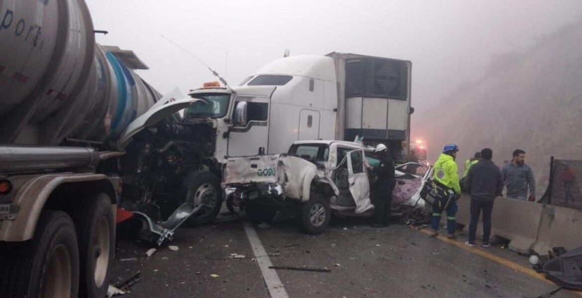 Autoridades de Protección Civil de Nuevo León reportan que el percance se debió a que un tráiler volcó y fue impactado por otro, mismo que impacta a 13 vehículos, esto aunado a la poca visibilidad, provoca el cierre de la vidalidad.