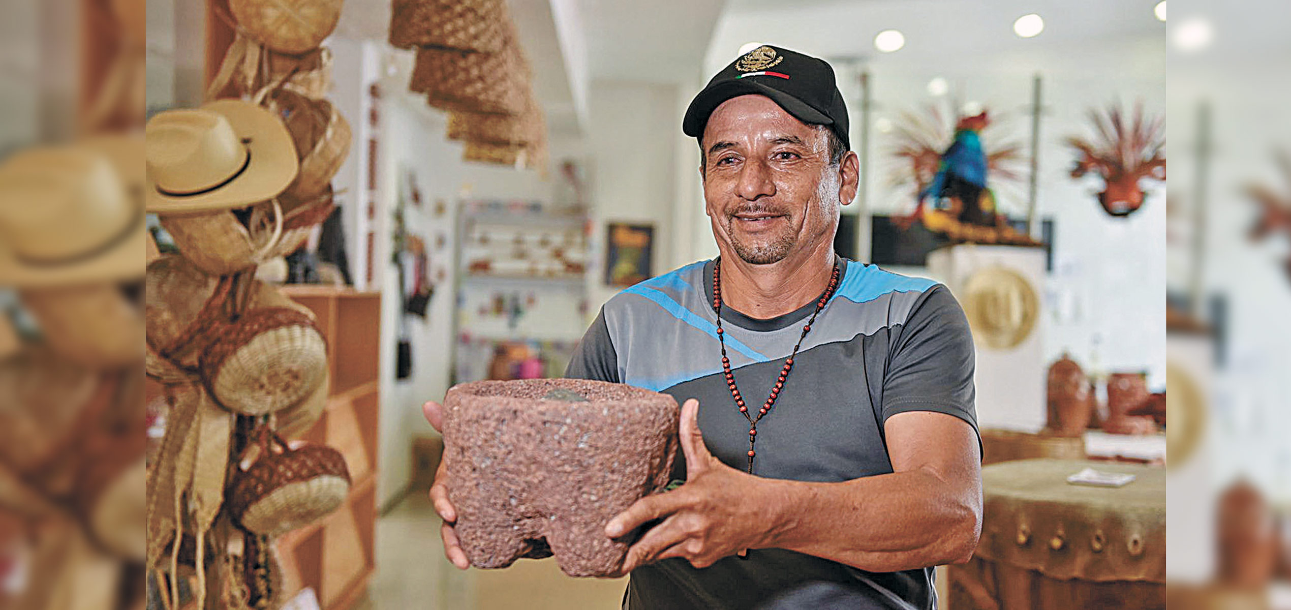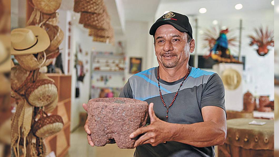 Por su parte, Raúl Sánchez Ávila, originario de la comunidad de Chavarría, municipio de Coatlán del Río, triunfó con la fabricación de un molcajete labrado en piedra.