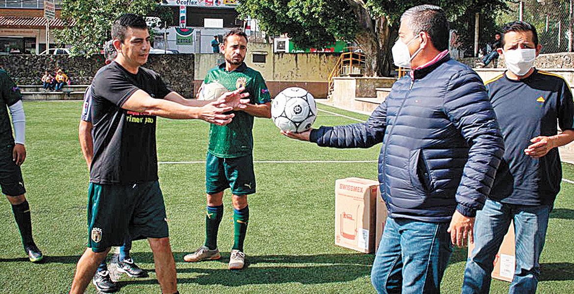 Con la finalidad de impulsar el deporte entre los jóvenes y respetando los protocolos que marca la Secretaría de Salud, el alcalde de Tepoztlán, Rogelio Torres Ortega, entregó balones y bombas aspersoras.