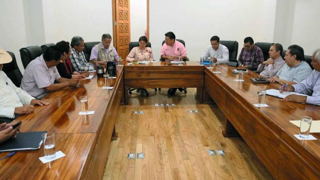 Compromiso. El secretario de Gobierno, Matías Quiroz; la diputada Hortencia Figueroa y el titular de Sedagro, Roberto Ruiz, se reunieron con productores para definir ruta de protección de la denominación.