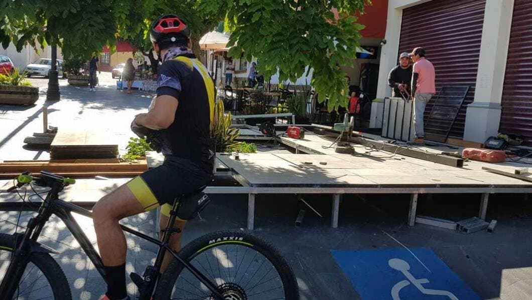 Pese a innumerables quejas contra el restaurante El Motivo, ubicado en cale Hidalgo, por el bloqueo con la estructura, hasta el momento la misma permanece sin ser retirada.