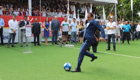 Rezende Moreira fue la encargada de dar la bienvenida a los 640 deportistas que participarán en la competencia de balompié, a quienes felicitó y reconoció por su tenacidad y por seguir el camino del deporte.