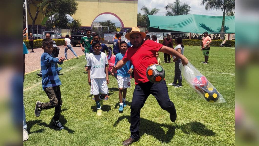 Regalo. Agustín Alonso también entregó balones a los niños.