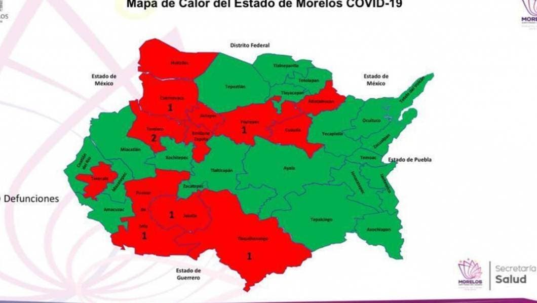 Los municipios donde se han dado los decesos son 2 en Temixco, 1 en Yautepec, 1 en Cuernavaca, 1 en Jojutla, 1 en Puente de Ixtla y 1 en Tlaquiltenango.