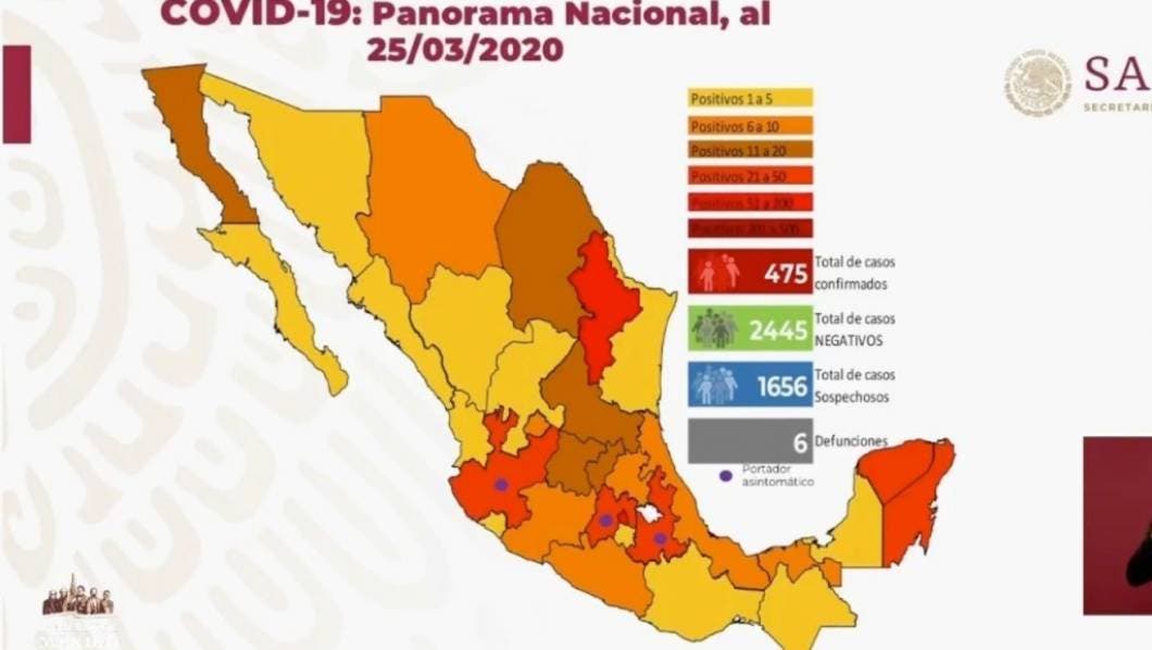 En su conferencia diaria, López-Gatell reportó que el número de contagios confirmados aumentó a 475, es decir, 70 más que el martes 24, cuando había 405.