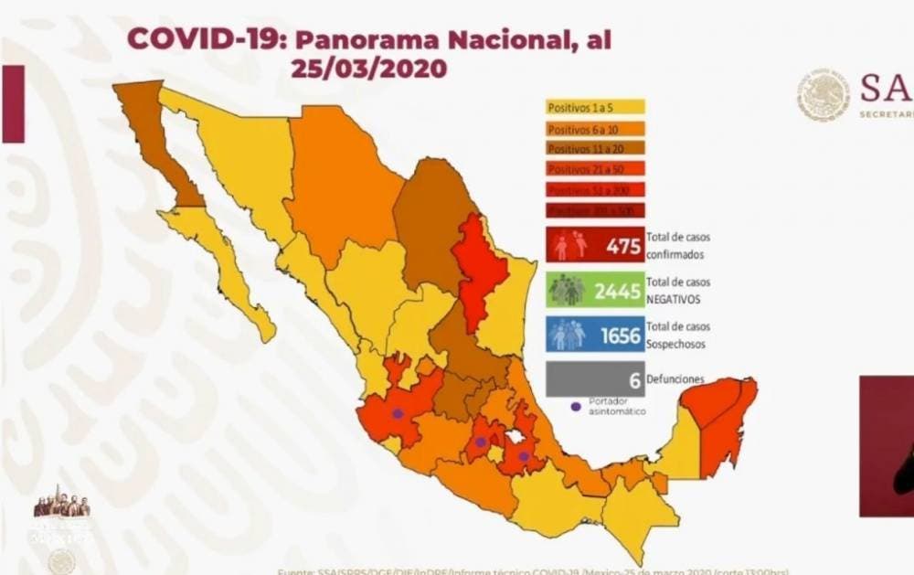 El número de muertos por coronavirus COVID19 aumentó este miércoles a seis, al registrarse un nuevo deceso en las últimas 24 horas, informó Hugo López-Gatell, subsecretario de Prevención y Promoción de la Salud de la Secretaría de Salud.