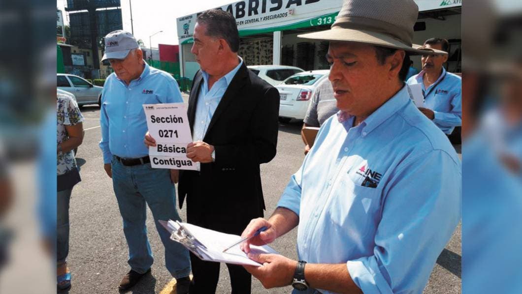 Jornada. El vocal ejecutivo del INE, Sergio Aispuro, con personal del Instituto y representantes de partidos políticos revisaron las condiciones de los sitios donde se han instalado las mesas de votación.