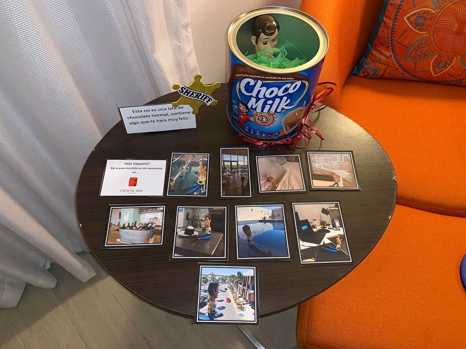 Y es que los empleados del hotel se dieron a la labor de fotografiar al muñeco “Woody” en varios escenarios del hotel desde donde se le observa jugar futbolito, nadar en la piscina del lugar y hasta echarse unas cervezas en el bar para confirmarle al niño que su juguete no se había fastidiado cuando se quedó en Los Mochis y que en realidad se la había pasado muy bien.