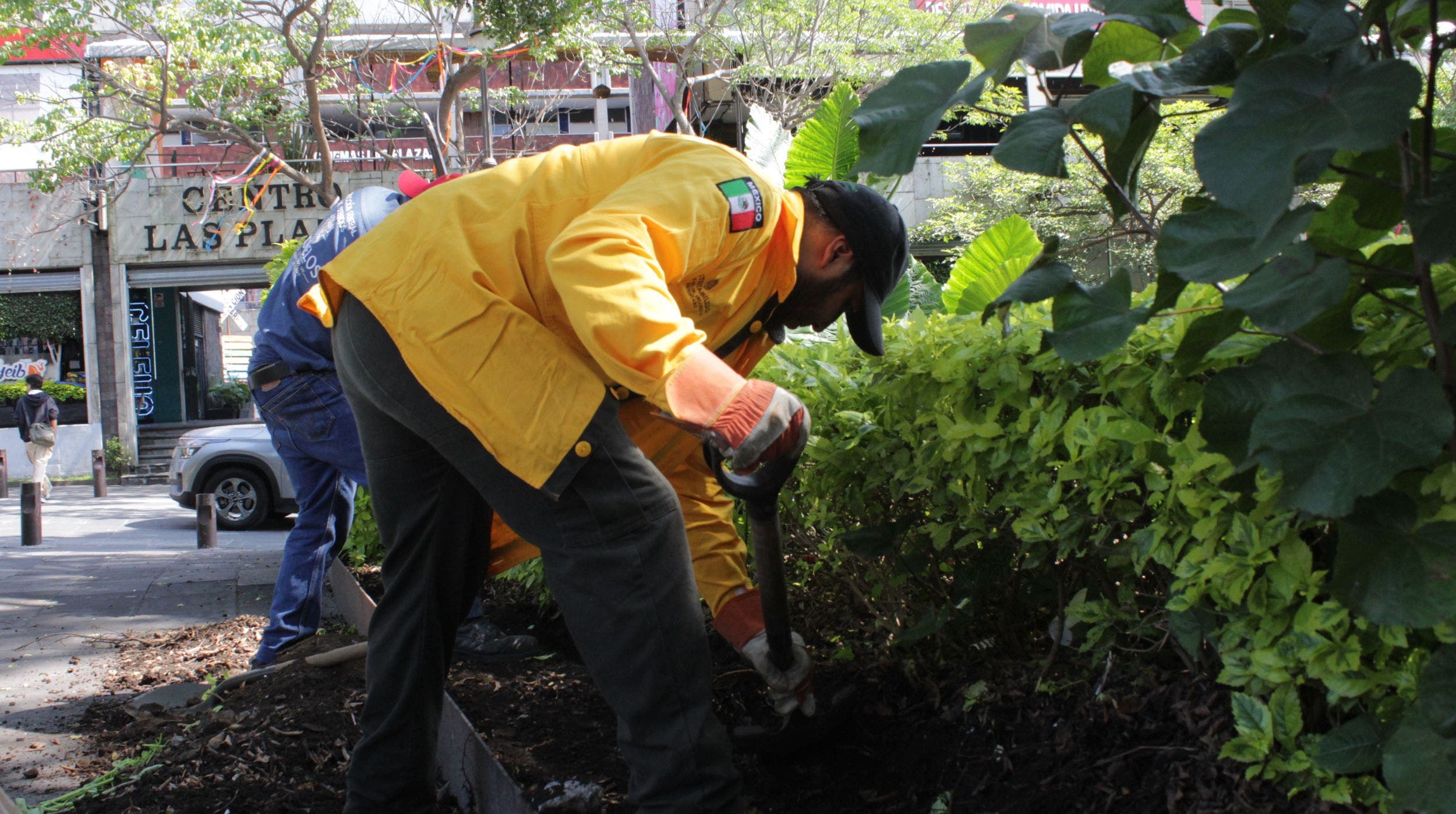 “Iniciamos con los trabajos de mantenimiento, saneamiento y revitalización del arbolado. Cuando se construyó esta plaza, los árboles quedaron en espacios muy reducidos, el suelo es compacto y pequeño, por lo que es urgente enriquecerlo con nutrientes esenciales”, explicó Dupré Ramírez.
