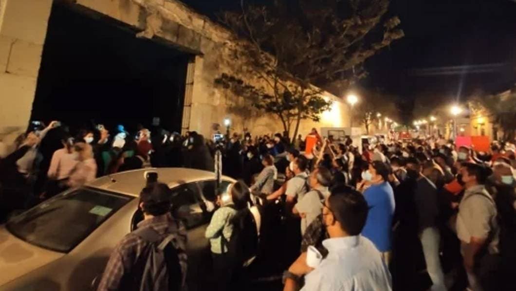 Integrantes de la sección 22 de la CNTE ingresaron al Centro Cultural Santo Domingo, en la Ciudad de Oaxaca, donde se realizaría la boda de la exlider magisterial, Elba Esther Gordillo con su novio el abogado Luis Antonio Lagunas.