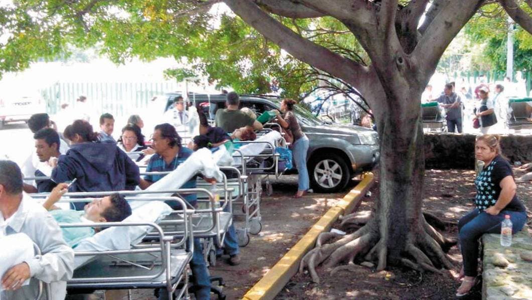 Evacuan. Pacientes del Servicio de Urgencias fueron evacuados y puestos en la explanada del hospital IMSS de Plan de Ayala.