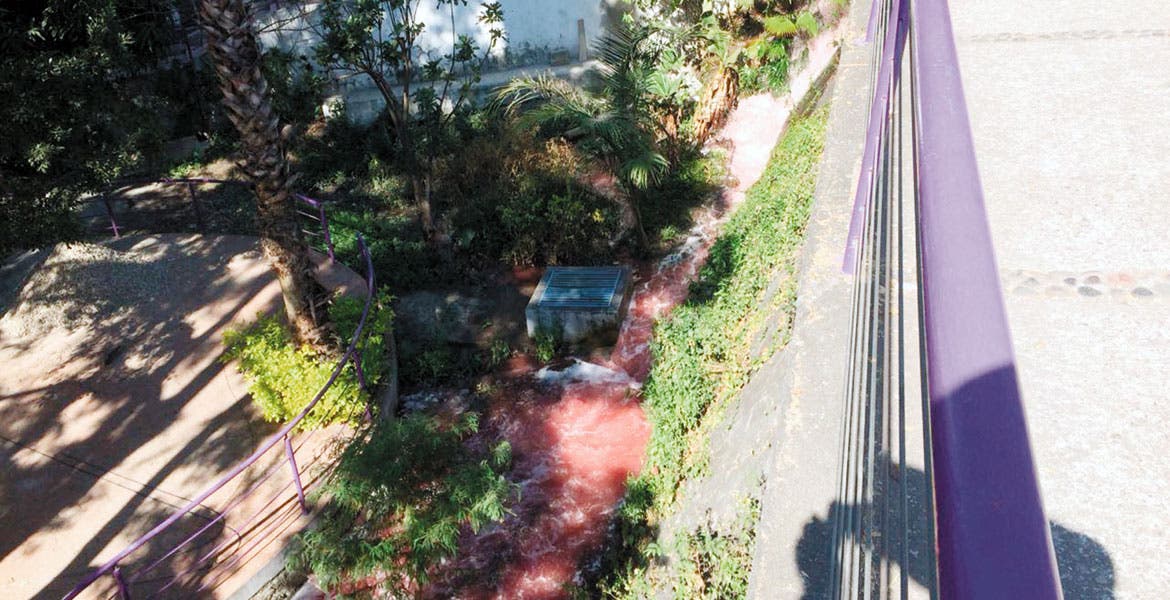 Descarga. Ceagua y SDS investigan quién vertió agua color rojo y con aroma fétido en el afluente del Parque Barranca Chapultepec.
