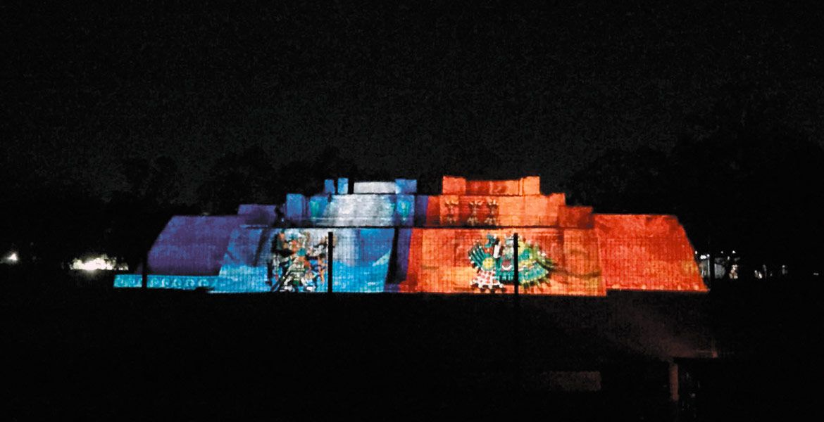 Técnica. Sobre una cara de la pirámide proyectan pasajes históricos de los tlahuicas.