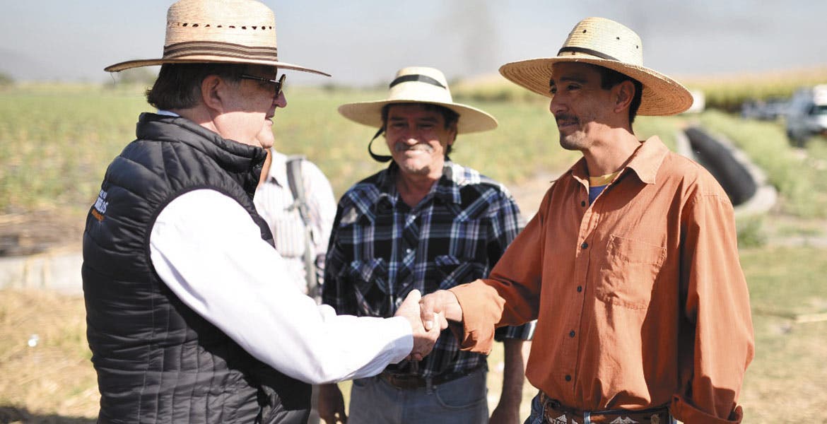Acompañado por los secretarios de Desarrollo Agropecuario, Roberto Ruiz Silva, el Gobernador entregó al presidente del Sistema Producto Arroz, Jesús Solís Alvarado, un cheque por 20 millones de pesos para llevar a cabo dicho proyecto además de una retroexcavadora.