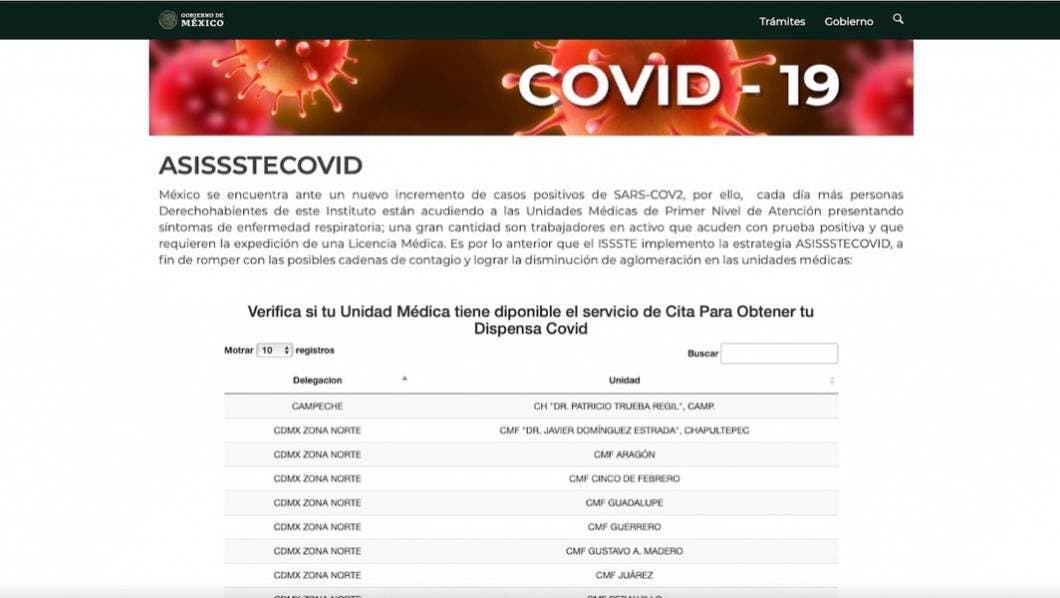 En cuanto al portal issste.gob.mx/asissstecovid, Pedro Zenteno precisó quees un espacio dedicado a los derechohabientes donde podrán encontrar información de interés referente a esta enfermedad y en esta primera etapa, tener acceso al listado de unidades médicas que cuenten con un Consultorio de Licencias Médicas COVID-19.