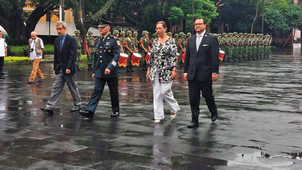 La secretaria de Innovación, Ciencia y Tecnología, Brenda Valderrama Blanco, en representación del Poder Ejecutivo, encabezó ayer la ceremonia de izamiento de bandera y honores correspondientes en la plaza de armas "Emiliano Zapata", en la Ecozona de Cuernavaca.