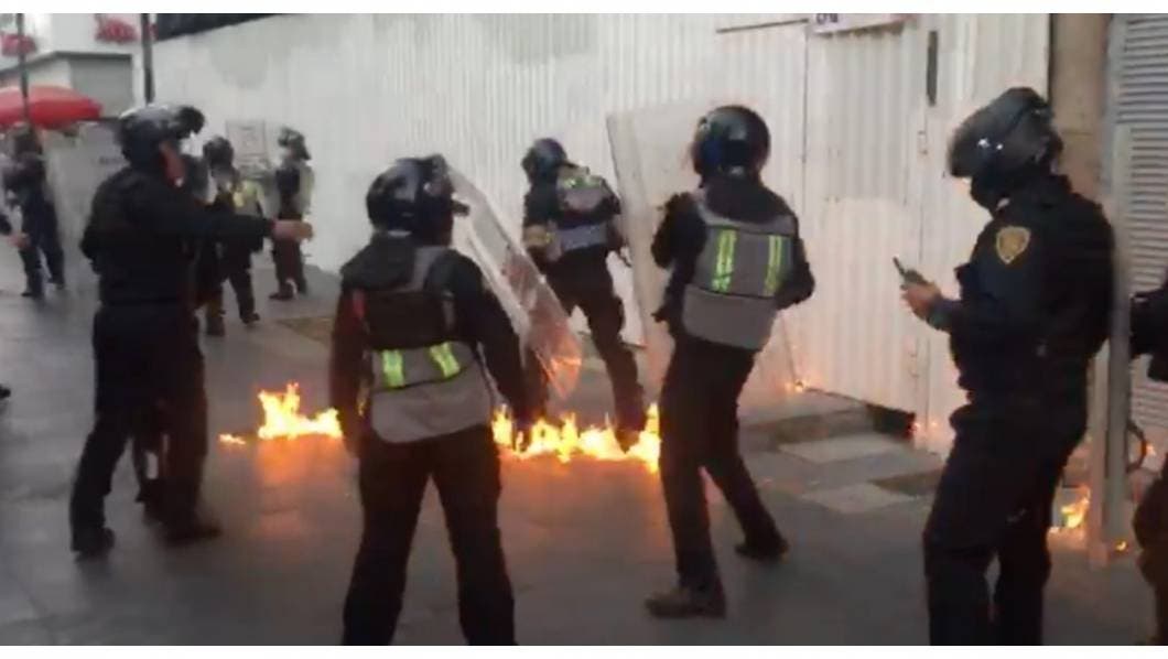 Tras la agresión, los uniformados de la Ciudad de México encapsularon a los presuntos infiltrados con la finalidad de evitar que continúen en la marcha.