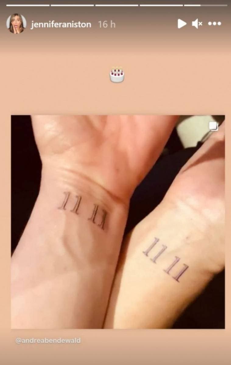 Mediante sus historias de Instagram, la actriz de la popular serie Friends reveló a sus seguidores que el tatuaje se lo hizo junto a Andrea Bendewald, quien acaba de cumplir 51 años. Aniston ha felicitado a la que considera una “hermana de otro padre” con imágenes de ambas, entre las cuales aparece el tatuaje que las dos amigas tienen en sus muñecas.