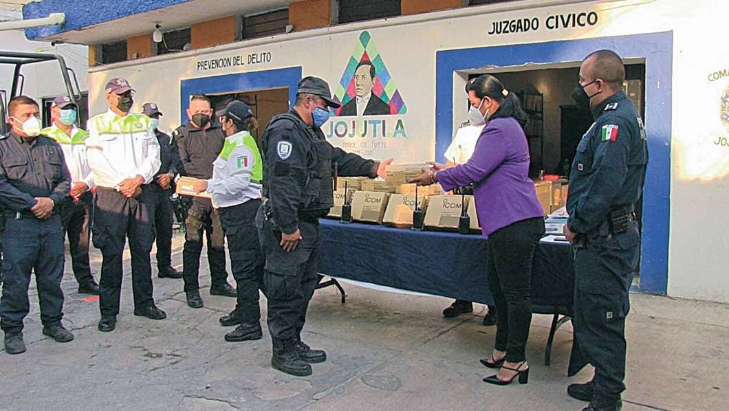 El Ayuntamiento de Jojutla, que encabeza el alcalde Juan Ángel Flores Bustamante, a través de la Síndica Amada Martínez Morán, realizó el día de ayer la entrega de 37 equipos de radio comunicación con radio base, para los elementos de Seguridad Pública y Tránsito y Vialidad, y con ello mejorar la comunicación y tiempos de reacción de los policías en caso de algún auxilio.