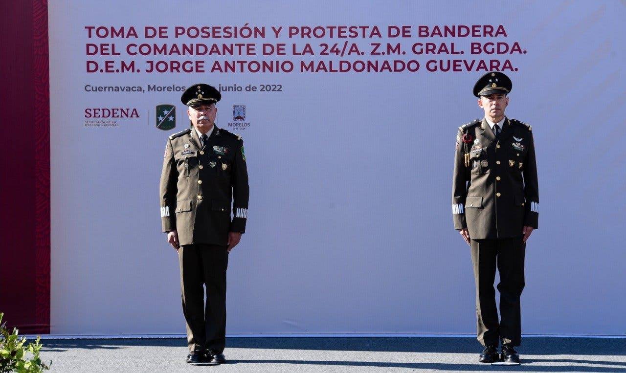 Esta mañana, el gobernador Cuauhtémoc Blanco asistió a la toma de posesión al cargo y protesta de bandera del General de Brigada Diplomado de Estado Mayor, Jorge Antonio Maldonado Guevara, como comandante de la 24/a Zona Militar.