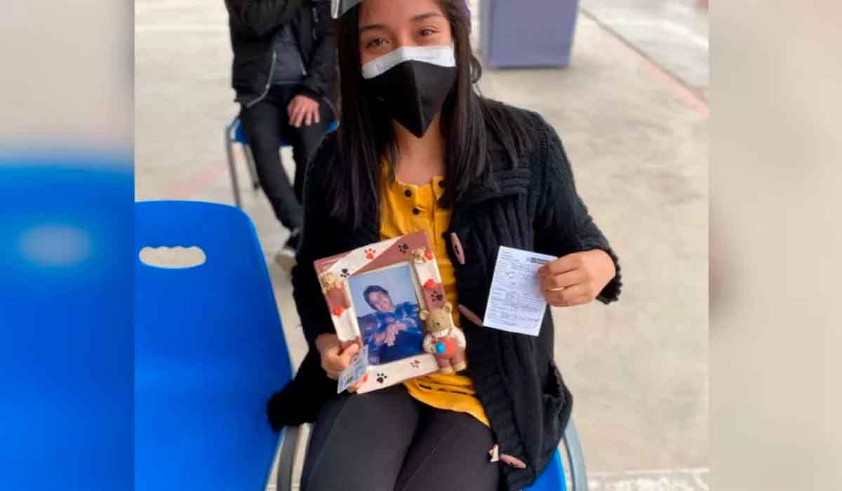 Con una foto enmarcada de su madre, Claudia acudió a la aplicación de su vacuna, mientras sostenía esta foto recibió la vacuna la joven dijo que dedicaba tal acto a las personas que desafortunadamente no llegaron a tiempo para recibir la vacuna contra covid 19, así como a su madre.