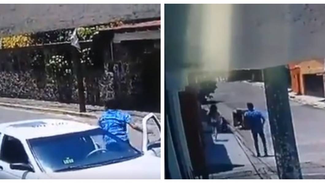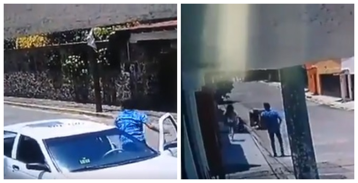 En el video difundido no se pueden apreciar las placas del taxi, pero sí la vestimenta del sujeto, que es camisa azul y pantalón de mezclilla.