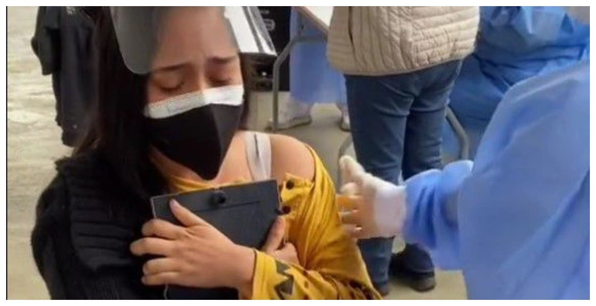 El llanto de la jóven fue una mezcla de tristeza y agradecimiento por la vacuna, ante la muerte de su abuela que no pudo acceder al fármaco y murió por el Covid-19.