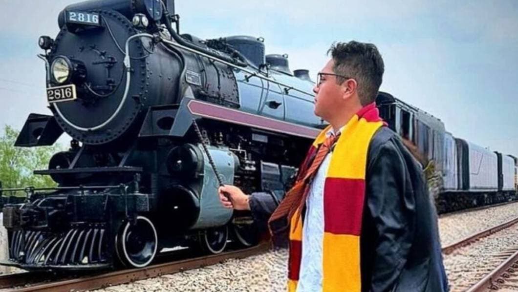 Aprovechando el nostálgico paso de la locomotora de vapor Empress 2816, un joven regiomontano tuvo la ingeniosa idea de disfrazarse como el icónico personaje Harry Potter, capturando la magia del momento en una serie de fotografías que rápidamente se viralizaron en Facebook.
