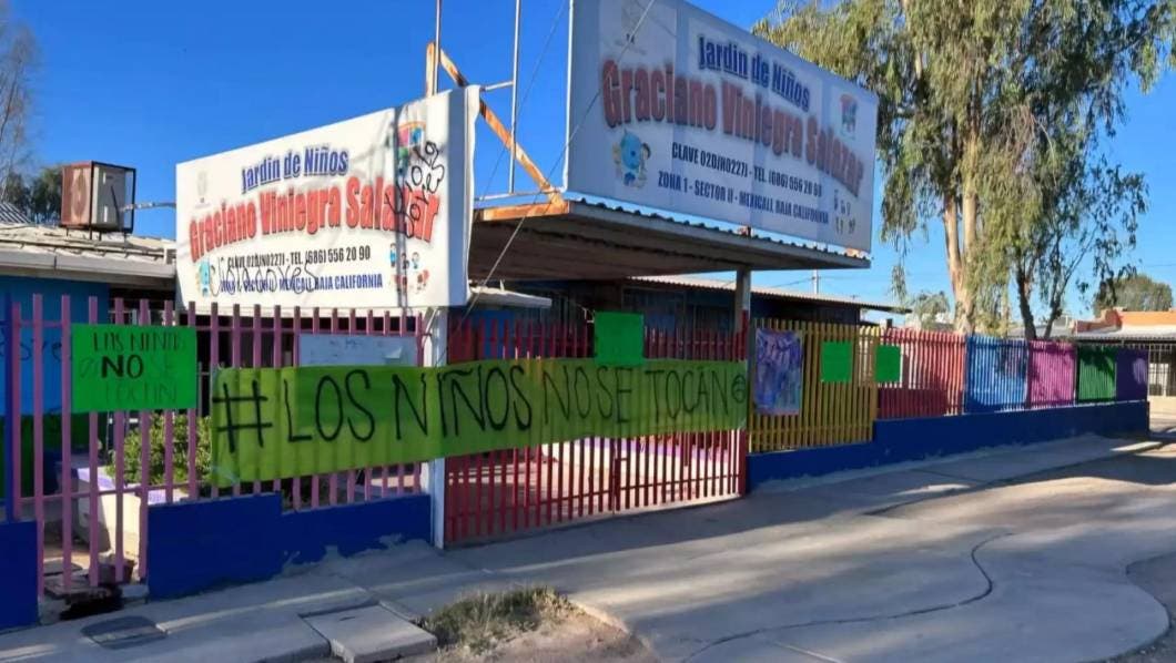 Este martes, padres de familia protestaron afuera del jardín de niños Graciano Viniegra, ubicado en Mexicali, para exigir justicia por la niña Kim, quien denunció que víctima de abuso sexual por parte de una profesora y un maestro del kínder.